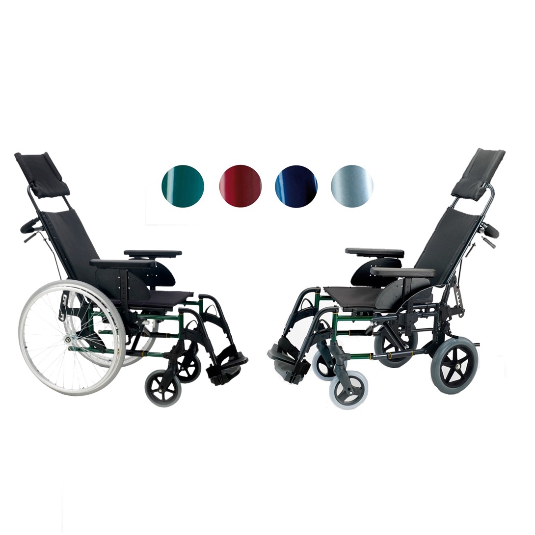 Permite-lhe escolher entre dois modelos diferentes em função do tamanho da roda traseira: pequena (12″) ou grande (24″), para autopropulsão. A roda de 24″ é também de extração rápida, a fim de facilitar o seu transporte.