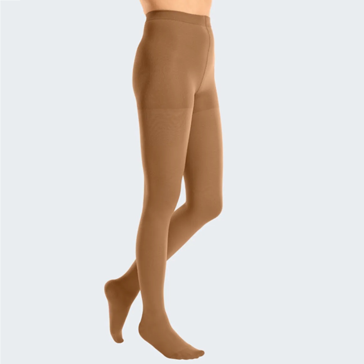 O collant elástico Mediven Cotton é uma meia de compressão médica em malha circular com 27% de algodão orgânico, assim como, poliamida reciclada. A combinação com fibras funcionais confere um efeito termorregulador: refrescante no tempo quente mas isolante no tempo frio.