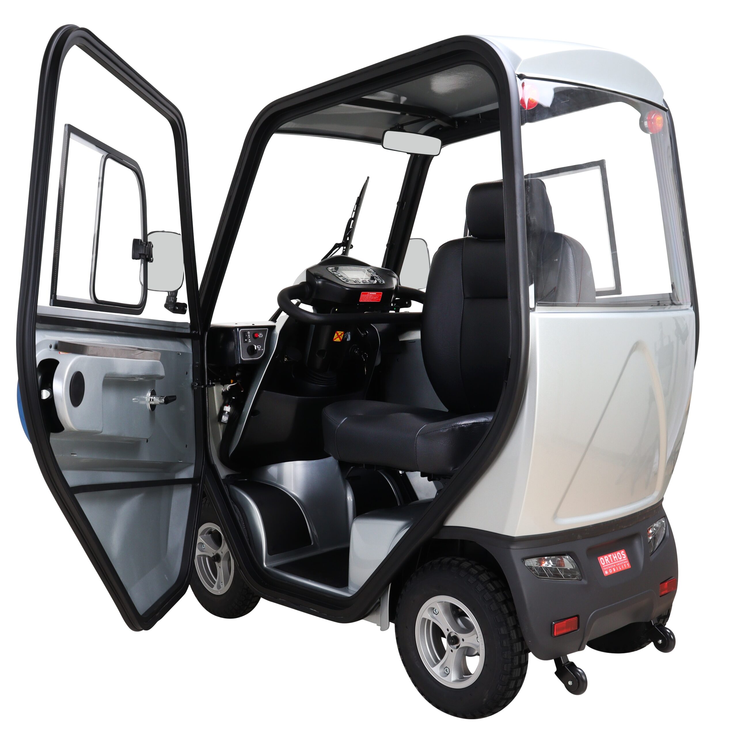 A scooter elétrica de mobilidade XXL Smart distingue-se pela sua cabine com janelas, permitindo assim resguardar o seu utilizador das condições climatéricas (vento, chuva e sol). Caracteriza-se pela sua robustez, permitindo assim um peso máximo de utilizador de 200 Kg.